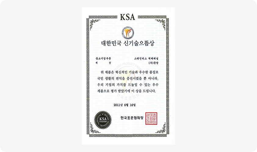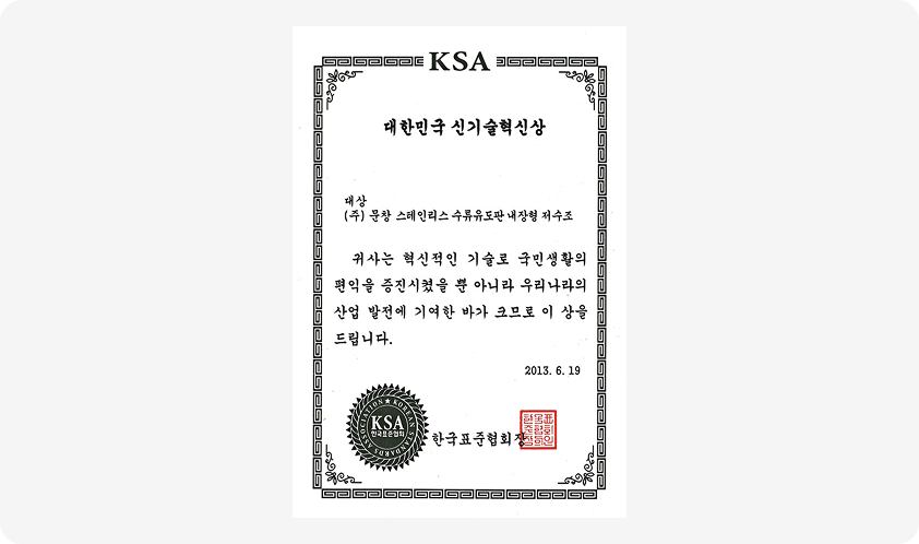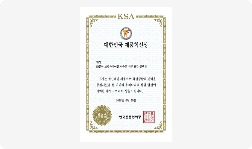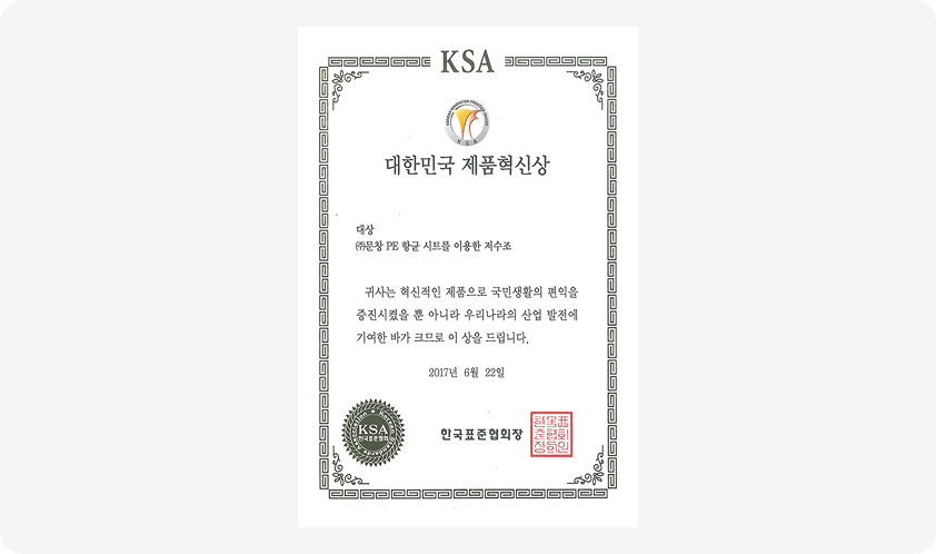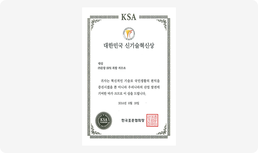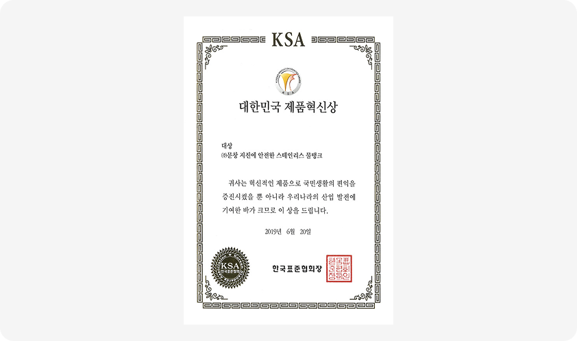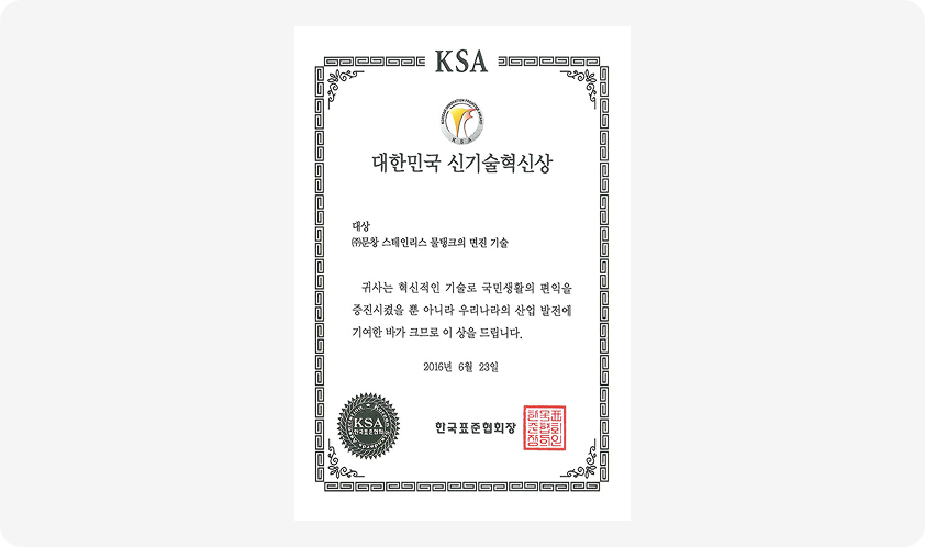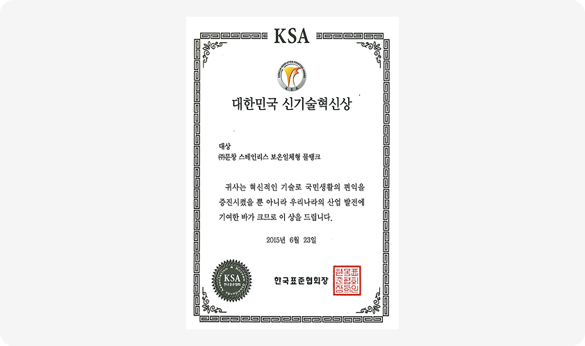 Green Technology Certification (Water tank technology improving condensation drainage with STS lining structure)
