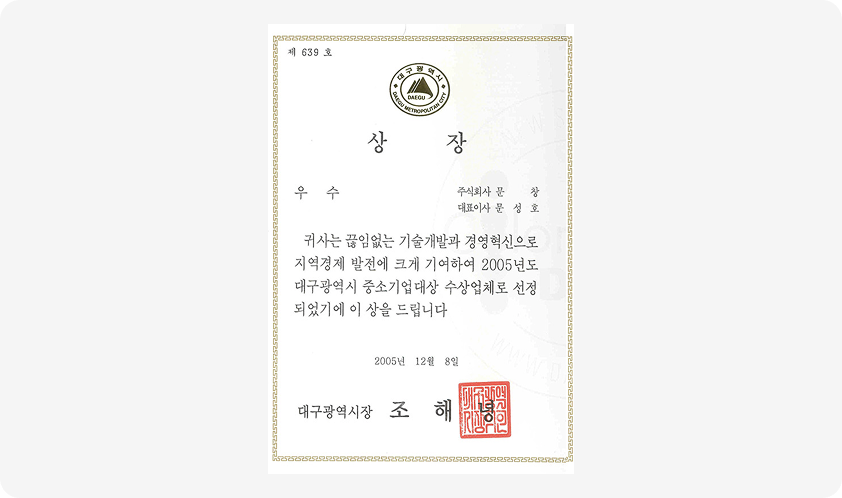 Excellent Performance Star Company Award (Mayor of Daegu Metropolitan City)